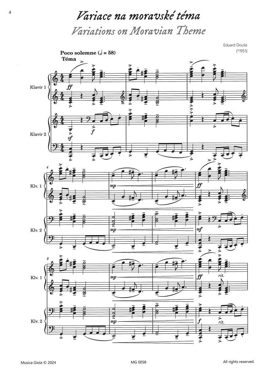 Douša: Variace na moravské téma / 1 klavír 4 ruce