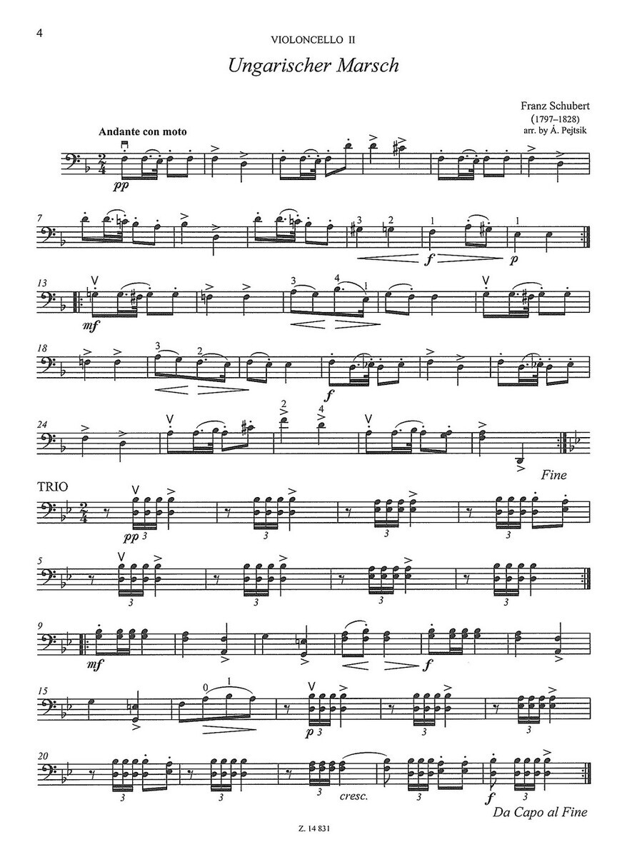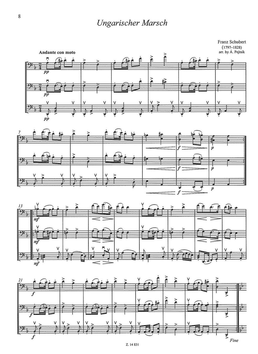Titul série "Chamber Music for VIOLONCELLOS" (komorní hudba pro violoncella), který hráčům na violoncello nabízí možnost zahrát si známé skladby a melodie klasické hudby v úpravě pro tři violoncella. Titul obsahuje partituru plus samostatně vložené rozepsané party pro jednotlivé hlasy.