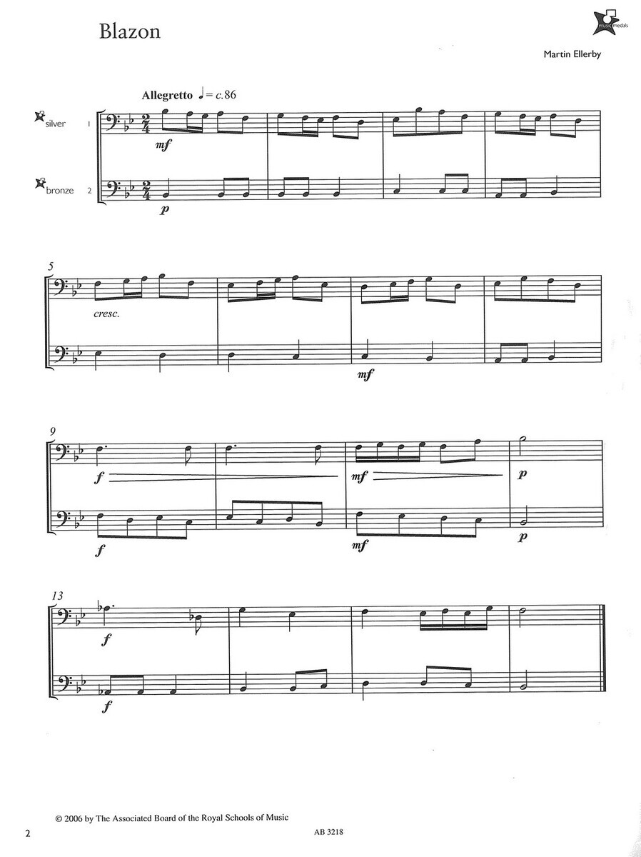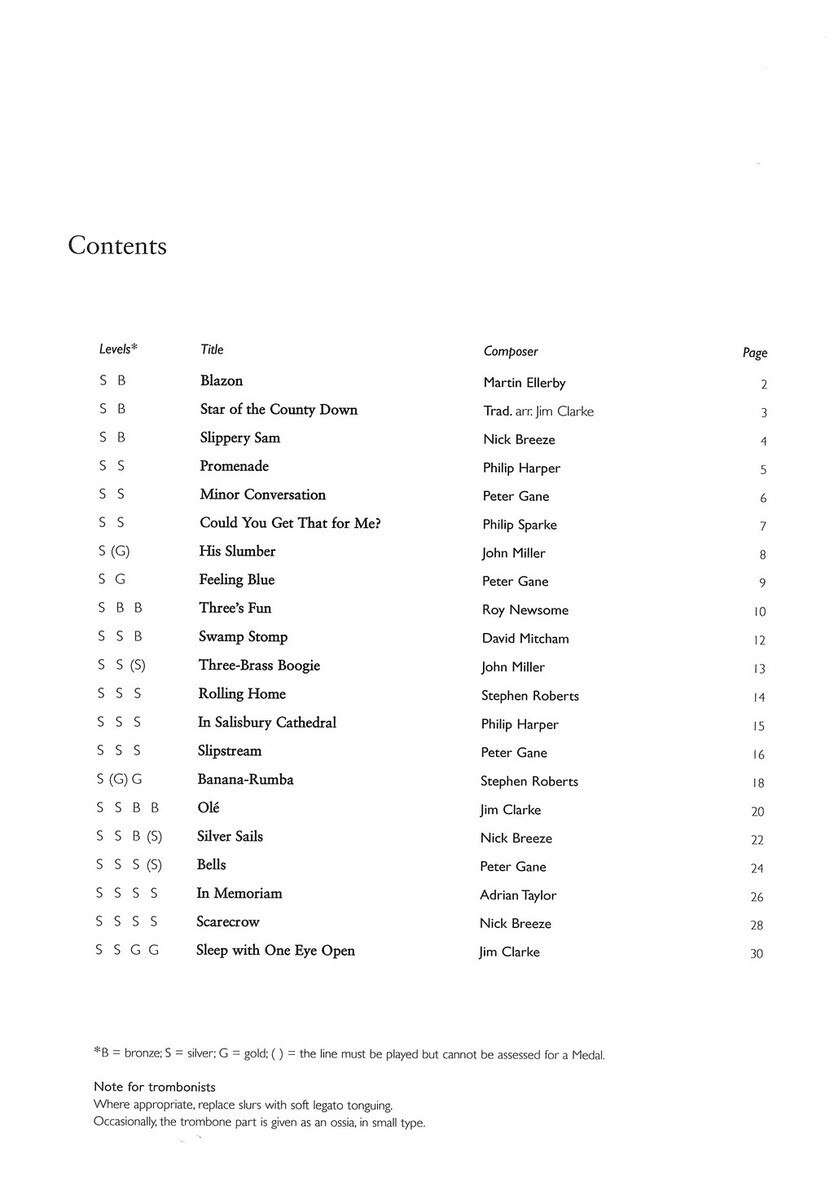 Music Medals Brass 2 Ensemble Pieces je série pěti titulů pěti různých obtížností, která Vám přináší zábavné skladby různých hudebních stylů a žánrů pro žesťové soubory - dueta, tria a kvarteta pro žesťové nástroje stejného ladění hrající v basovém klíči. Jednotlivé sešity jsou označeny obtížnosti podobně jako na sportovních soutěžích a to formou hodnoty medaile, zde jsou však medaile v pěti barvách (obtížnostech) - Copper (Měděná - 1 obtížnost), Bronze (Bronzová - 2 obtížnost), Silver (Stříbrná - 3 obtížnost), Gold (Zlatá - 4 obtížnost) a Platinum (Platinová - 5 obtížnost).