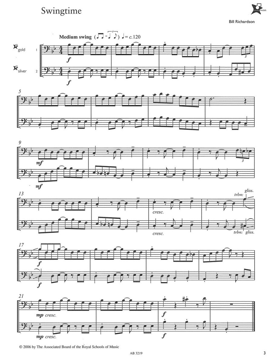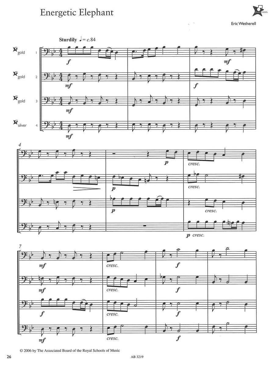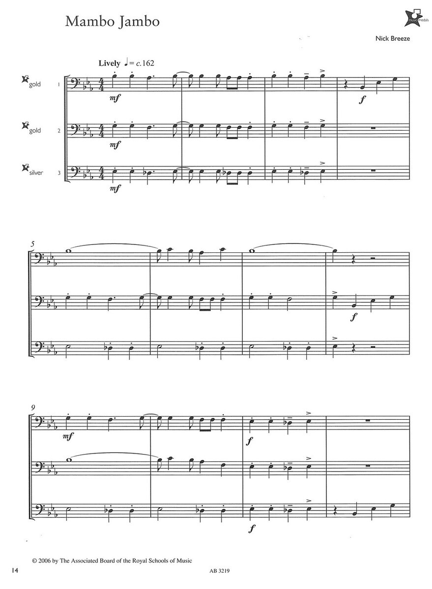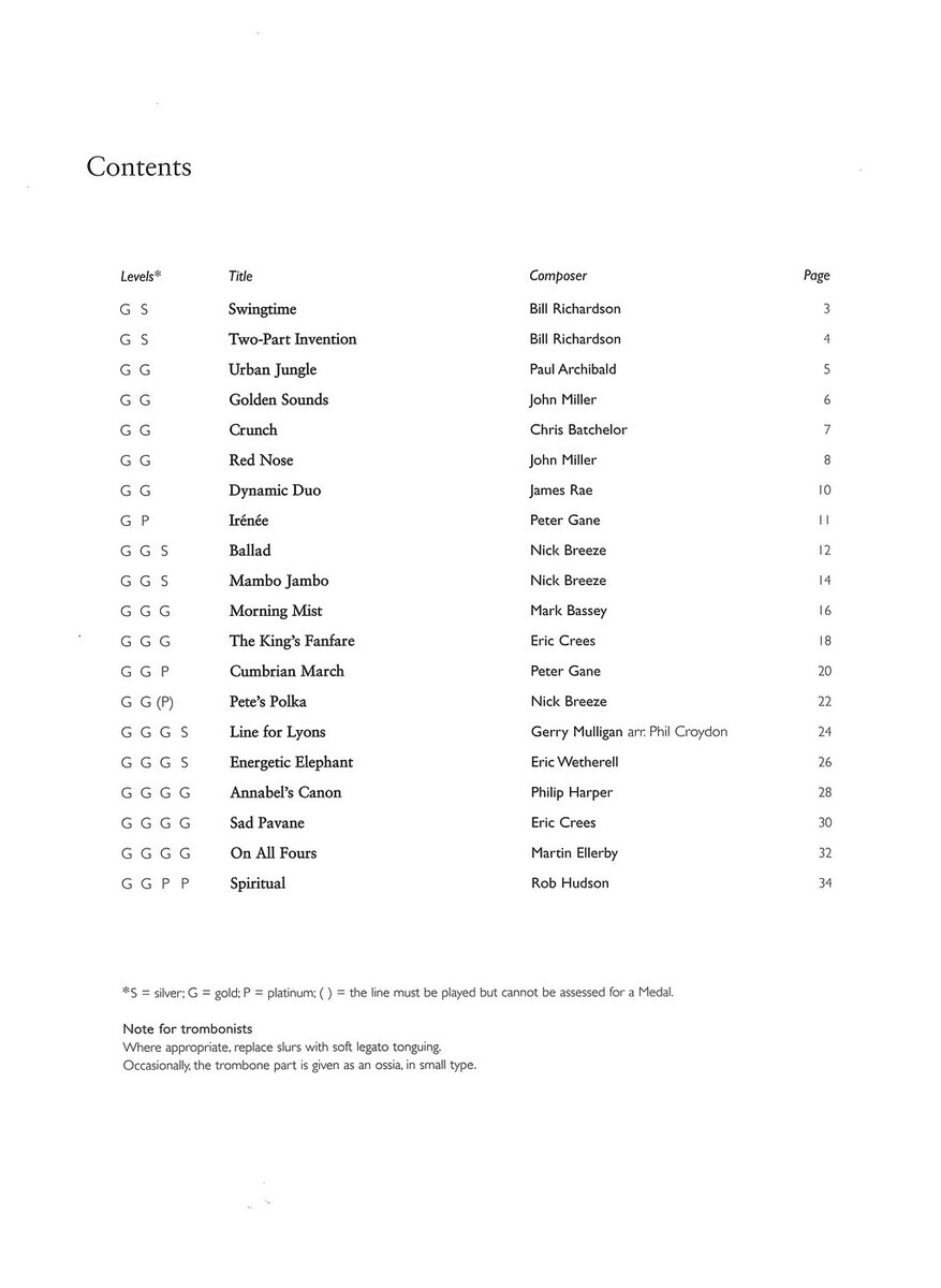 Music Medals Brass 2 Ensemble Pieces je série pěti titulů pěti různých obtížností, která Vám přináší zábavné skladby různých hudebních stylů a žánrů pro žesťové soubory - dueta, tria a kvarteta pro žesťové nástroje stejného ladění hrající v basovém klíči. Jednotlivé sešity jsou označeny obtížnosti podobně jako na sportovních soutěžích a to formou hodnoty medaile, zde jsou však medaile v pěti barvách (obtížnostech) - Copper (Měděná - 1 obtížnost), Bronze (Bronzová - 2 obtížnost), Silver (Stříbrná - 3 obtížnost), Gold (Zlatá - 4 obtížnost) a Platinum (Platinová - 5 obtížnost).