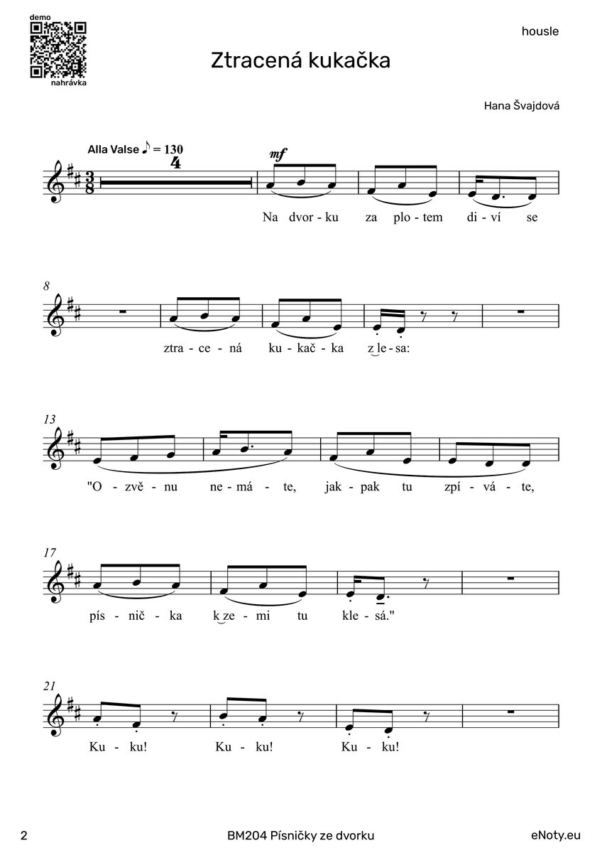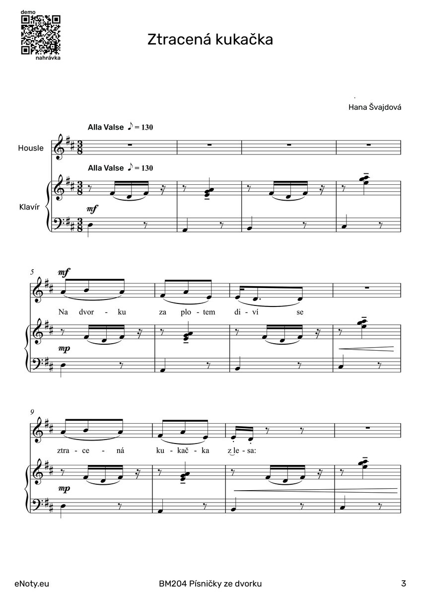 Sešit obsahuje klavírní doprovod pro zpěv nebo housle, plus samostatně vložený sólový part pro housle. Sešit i part obsahují také stránku s textem písniček.