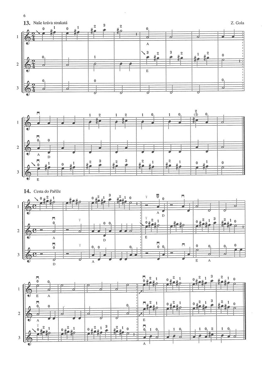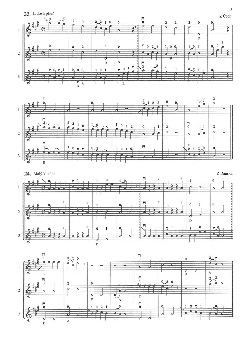 Tato sbírka skladeb pro troje housle je vhodná jako doplňující sešit pro souborovou hru k jakékoliv škole hry na housle.