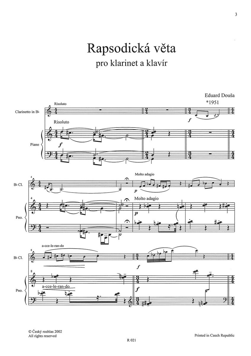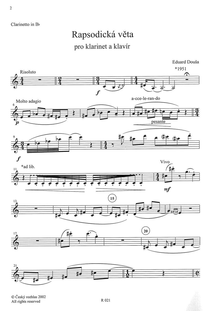 Douša: Rapsodická věta / klarinet a klavír