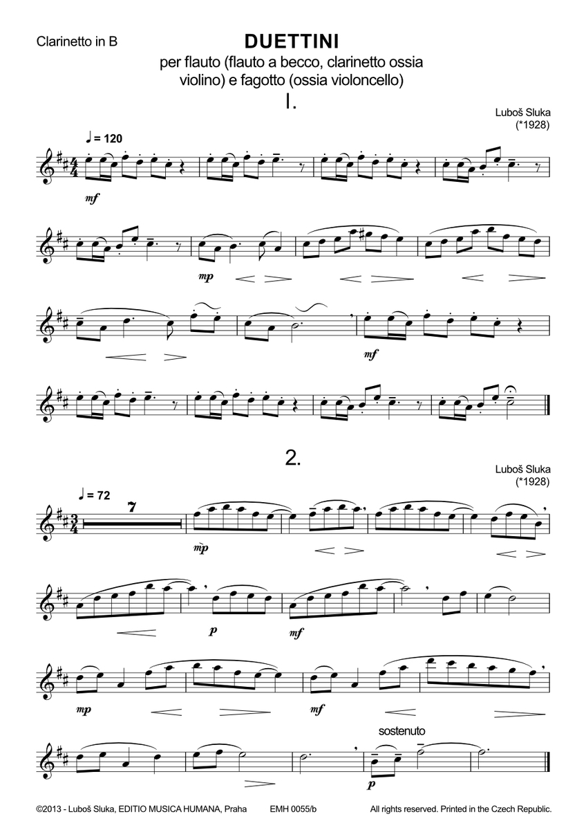 Sluka: DUETTINI / příčná flétna (housle, klarinet) a fagot (violoncello) - pět duet