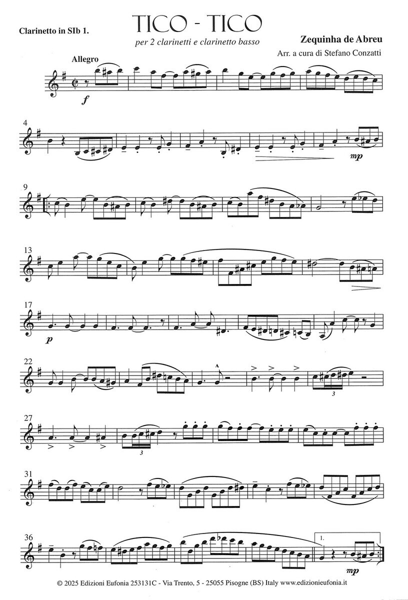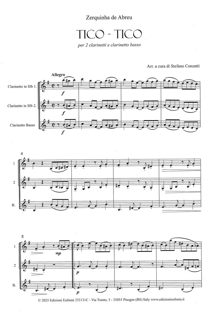 „Tico-Tico no Fubá“ je po celém světě oblíbená skladba, kterou napsal brazilský skladatel  Zequinha de Abreu. Nyní Vám tento rytmický evergreen přinášíme v povedeném aranžmá pro klarinetové trio pro obsazení dva klarinety a basový klarinet.
