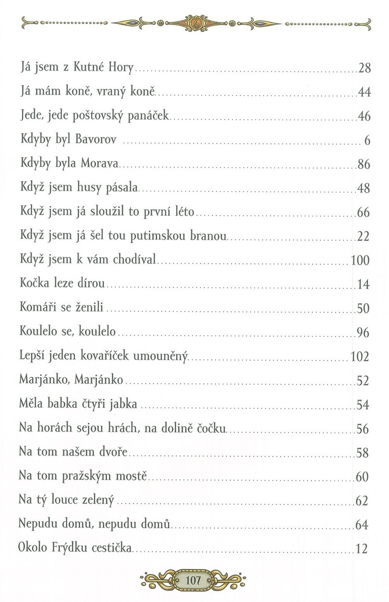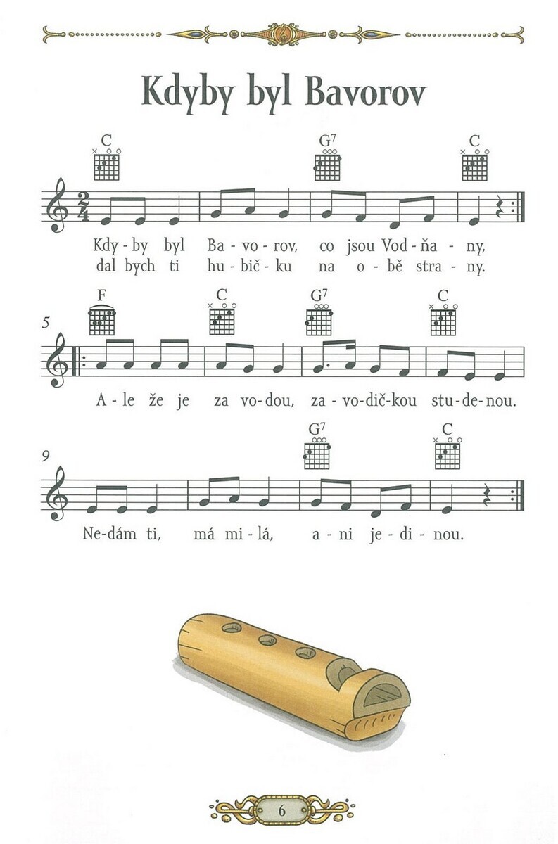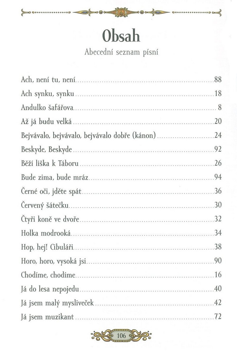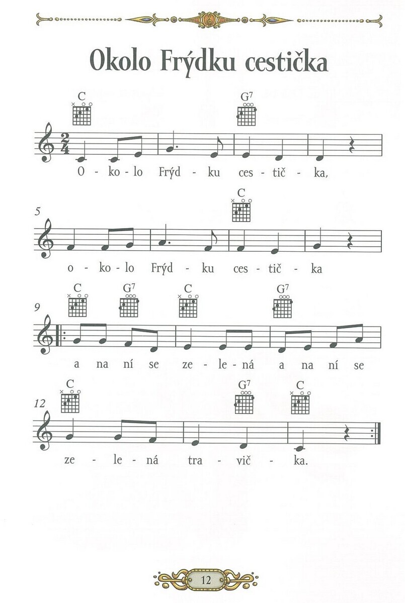 Zpěvník „České lidové písničky“ Vám přináší nejznámější české lidové písničky, jako jsou Kdyby byl Bavorov, Andulko Šafářová, Kočka leze dírou, Ach synku, synku a další … Zpěvník je určen úplně všem, malým i velkým. Písničky jsou napsány přehledným notovým zápisem a doplněné jednoduchými akordy a textem písniček. Zpěvník přináší radost z hraní i zpěvu v rodině, ve škole i na společenských setkáních. Umožňuje nejen dětem poznávat české hudební dědictví hravou formou, podporuje hudební cit, čtení not a základy doprovodu.