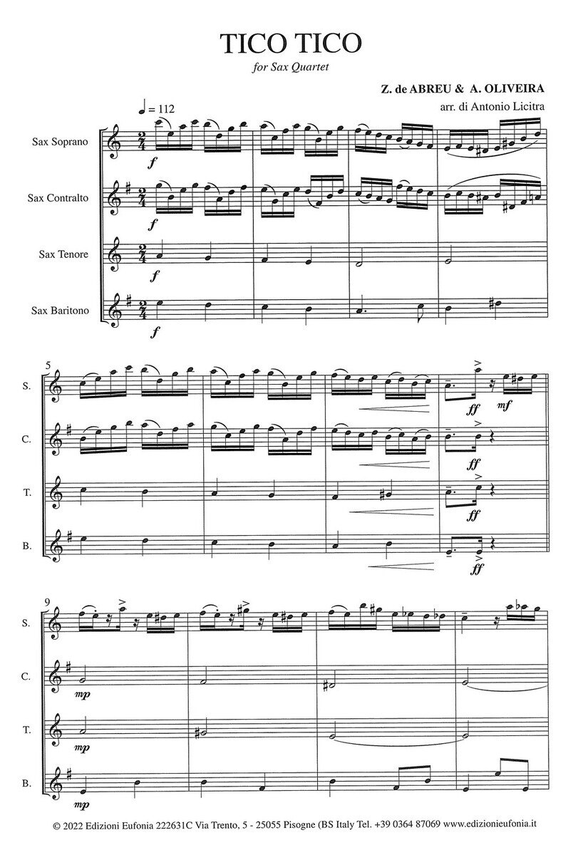 „Tico-Tico no Fubá“ je po celém světě oblíbená skladba, kterou napsal v roce 1917 brazilský skladatel  Zequinha de Abreu. Nyní Vám tento rytmický evergreen přinášíme v povedeném aranžmá pro středně pokročilý saxofonový kvartet SATB.