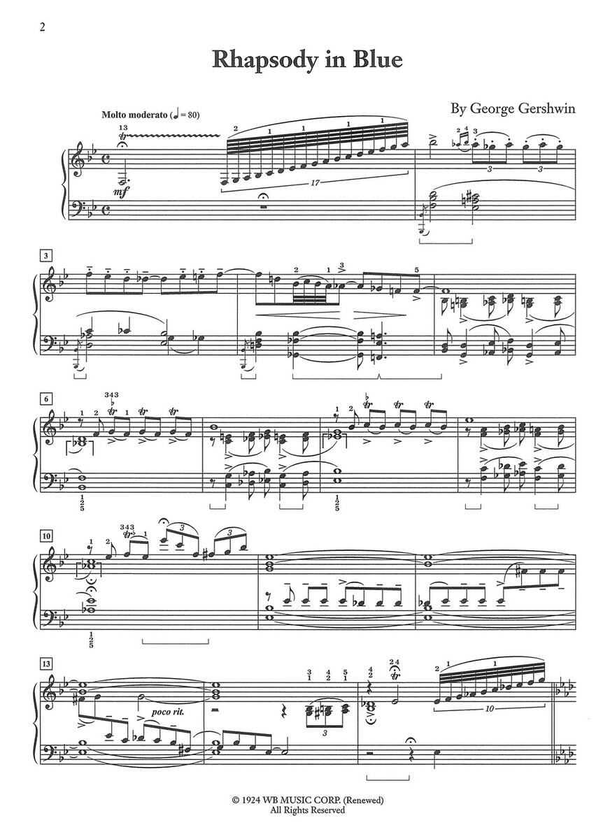 „Rhapsody in Blue“ je slavná skladba George Gershwina z roku 1924, která se stala jedním z velkých symbolů americké hudby 20. století. Skladba byla původně napsána pro klavír a jazzový orchestr a znamenala průlom v propojení klasické hudby s jazzem. Toto vydání Vám přináší úpravu pro sólo klavír, kterou editoval Maurice Hinson. Notace je upravena tak, aby zachovala bohatství a barevnost původního orchestrálního tónu, přičemž klavírní uspořádání umožňuje plné využití dynamiky, rytmického napětí a stylizace jazzu první poloviny 20. století. Úprava je vhodná především pro pokročilejší klavíristy, kteří hledají technicky náročnější dílo s výrazným charakterem.