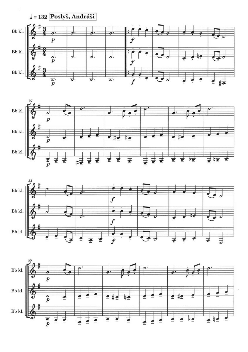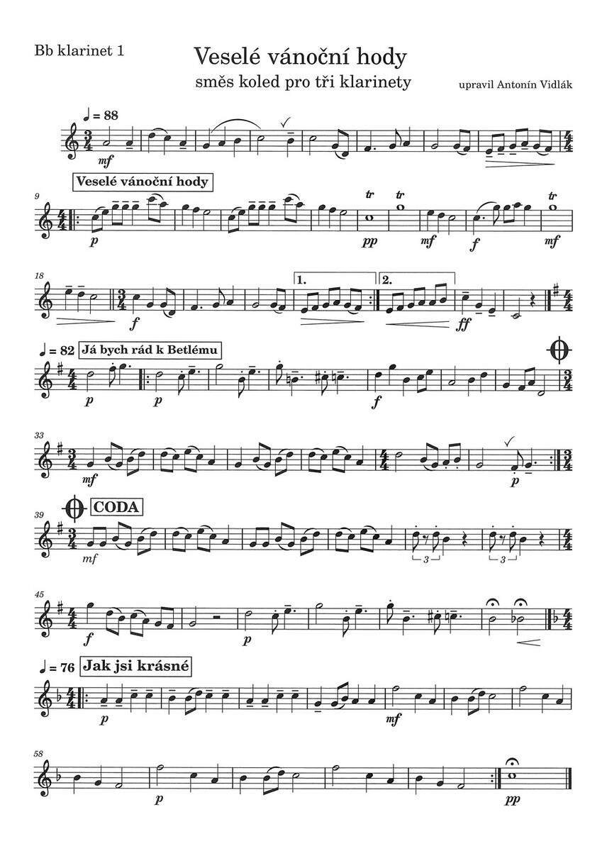 Dvě směsi českých vánočních koled v úpravě pro tři klarinety, třetí klarinet lze nahradit basklarinetem. Obtížnost odpovídá přibližně žákům 3. ročníků ZUŠ. Součástí sešitu je také koleda Byla cesta, byla ušlapaná v úpravě pro malý komorní soubor se zpěvem. Komorní soubor je ve složení trumpeta, housle, klarinet a violoncello (basová kytara).