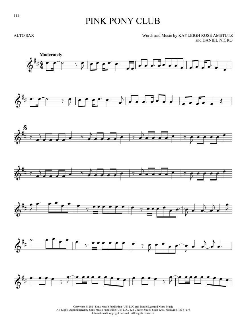 „101 Top Hits“ Vám přináší 101 nejoblíbenějších hitů současnosti ve snadné úpravě pro začínající a mírně pokročilé saxofonisty. Ve sbírce najdete známé písničky včetně: Anti-Hero, Birds of a Feather, Espresso, Pink Pony Club, Cardigan, Die With A Smile, Hold My Hand, Shotgun, This Wish, Wellerman, …….