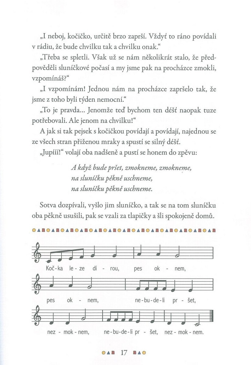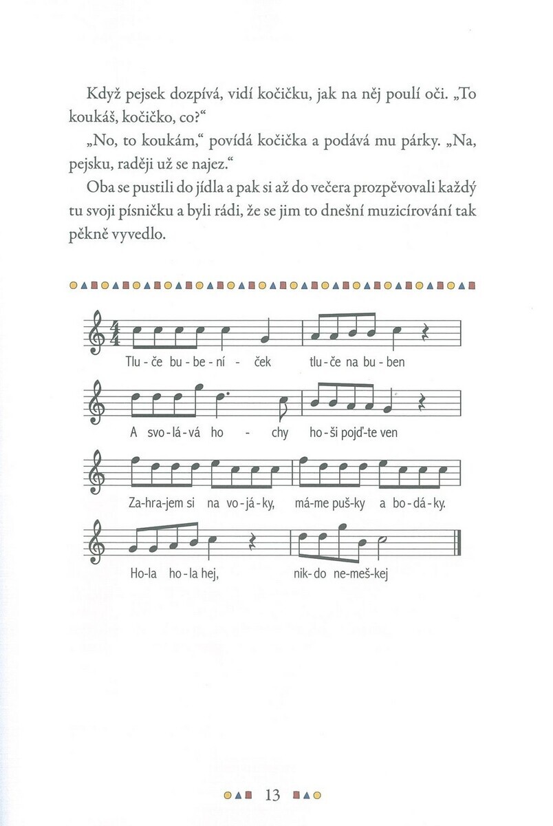 „Písničkový příběh pejska a kočičky“ je dětská publikace, kterou Vlasta Hurtíková připravila jako propojení vyprávění a jednoduchých písní určených pro malé děti. Pejsek s kočičkou se tentokrát rozhodli, že si udělají písničkové léto. Aby to nebylo jen tak obyčejné muzicírování, rozhodnou se, že si každou písničku nejen zazpívají, ale i zahrají jako malé divadlo. Sami si vyrobí buben, s chutí na něj zatlučou jako opravdoví bubeníci, a přitom si i pořádně zapochodují. Písničky si navíc upravují podle sebe, když se jim text moc nezdá, a způsobí tak v nejedné písničce pořádný zmatek. Publikace podporuje základní hudební dovednosti, jako je vnímání melodie, rytmu a textu, a současně rozvíjí dětskou představivost prostřednictvím propojení hudby s příběhem. Díky své přístupnosti je vhodná pro úplné začátečníky i děti bez předchozí hudební zkušenosti a může sloužit jako první krok k aktivnímu kontaktu s hudbou.