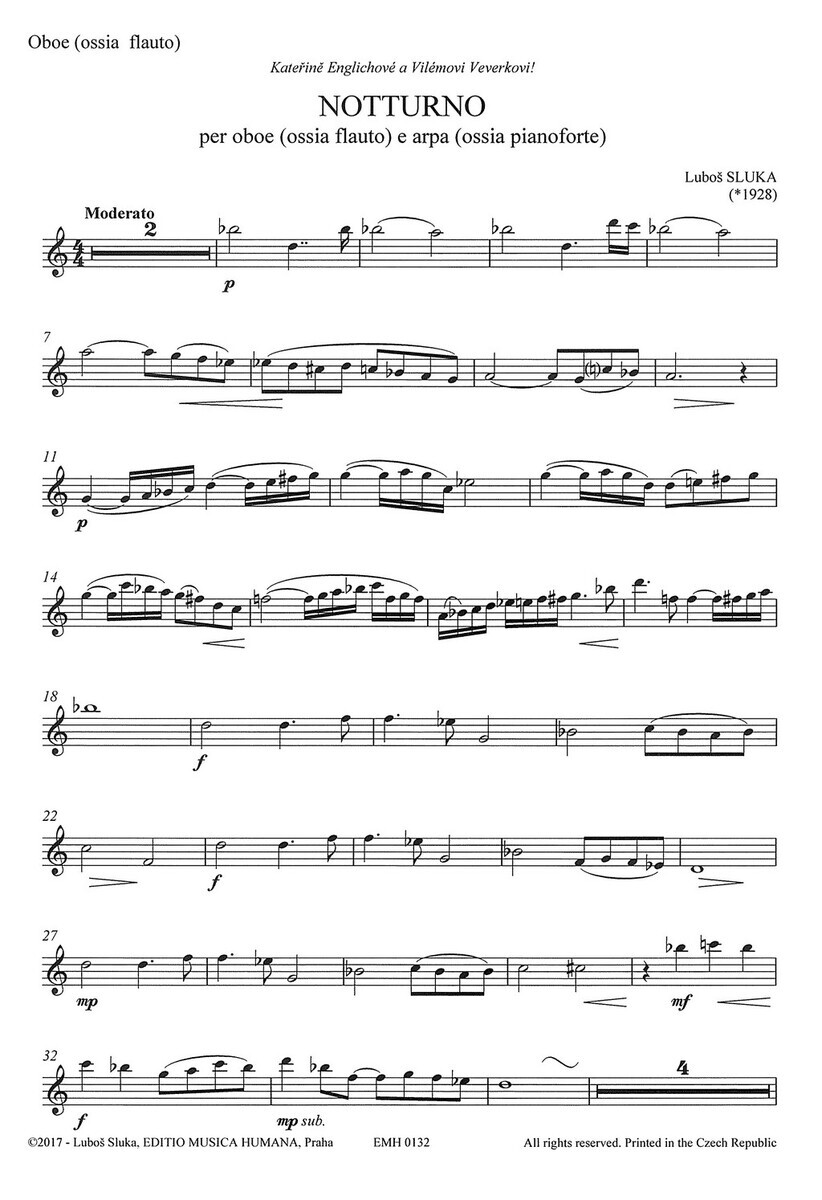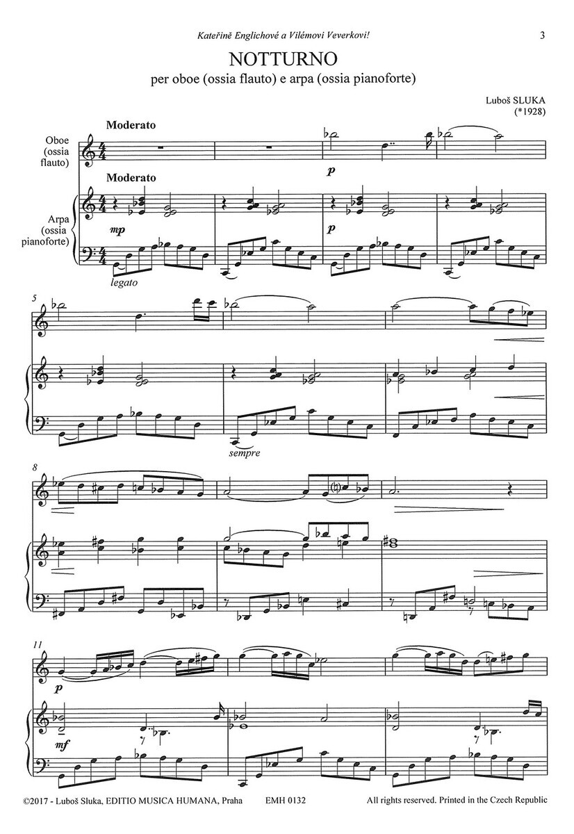 Sluka: NOTTURNO / hoboj (příčná flétna) a harfa (klavír)