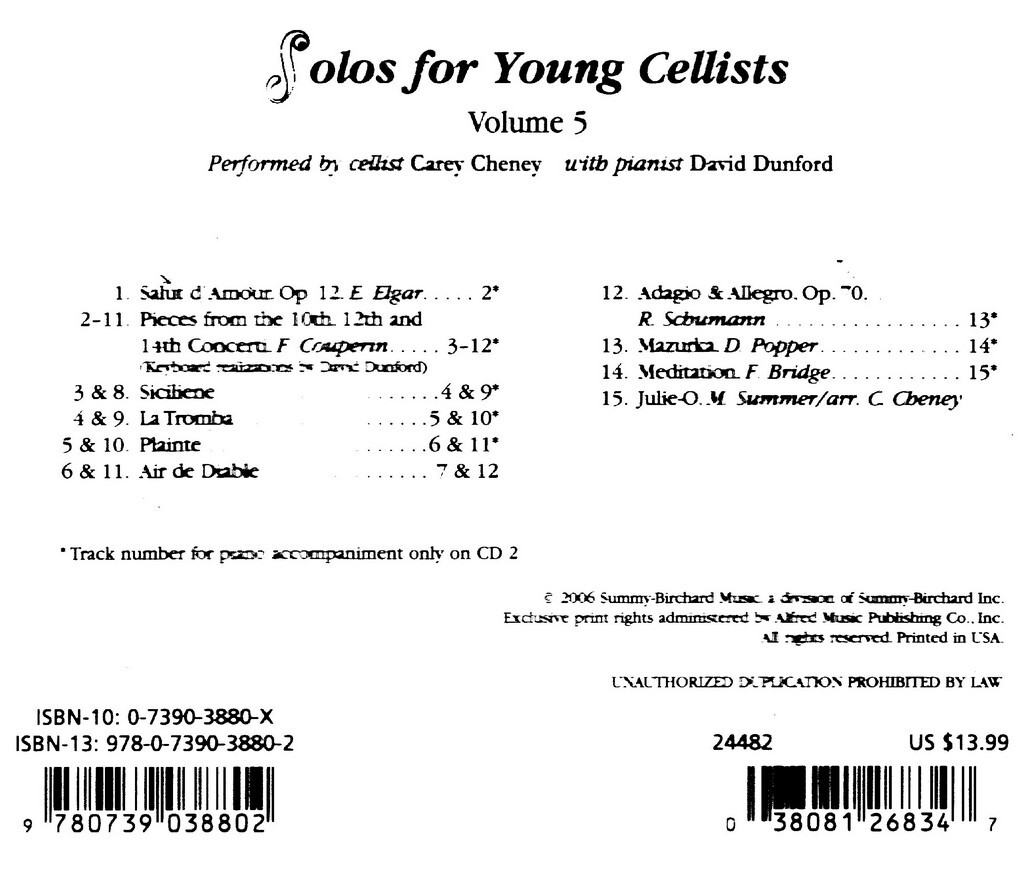 CD s nahrávkami a klavírním doprovodem skladeb uvedených v sešitě SOLOS FOR YOUNG CELLIST 5. (212X0).