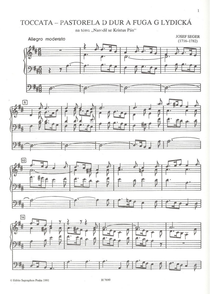 Toccata - pastorela D dur a fuga G lydická na téma Narodil se Kristus Pán (Seger Josef)