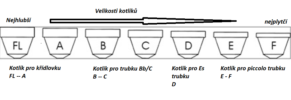 Dále nestandardní nátrubky - BR concept, "Reiche" barokní nátrubek, speciální nátrubky pro rotary trubky