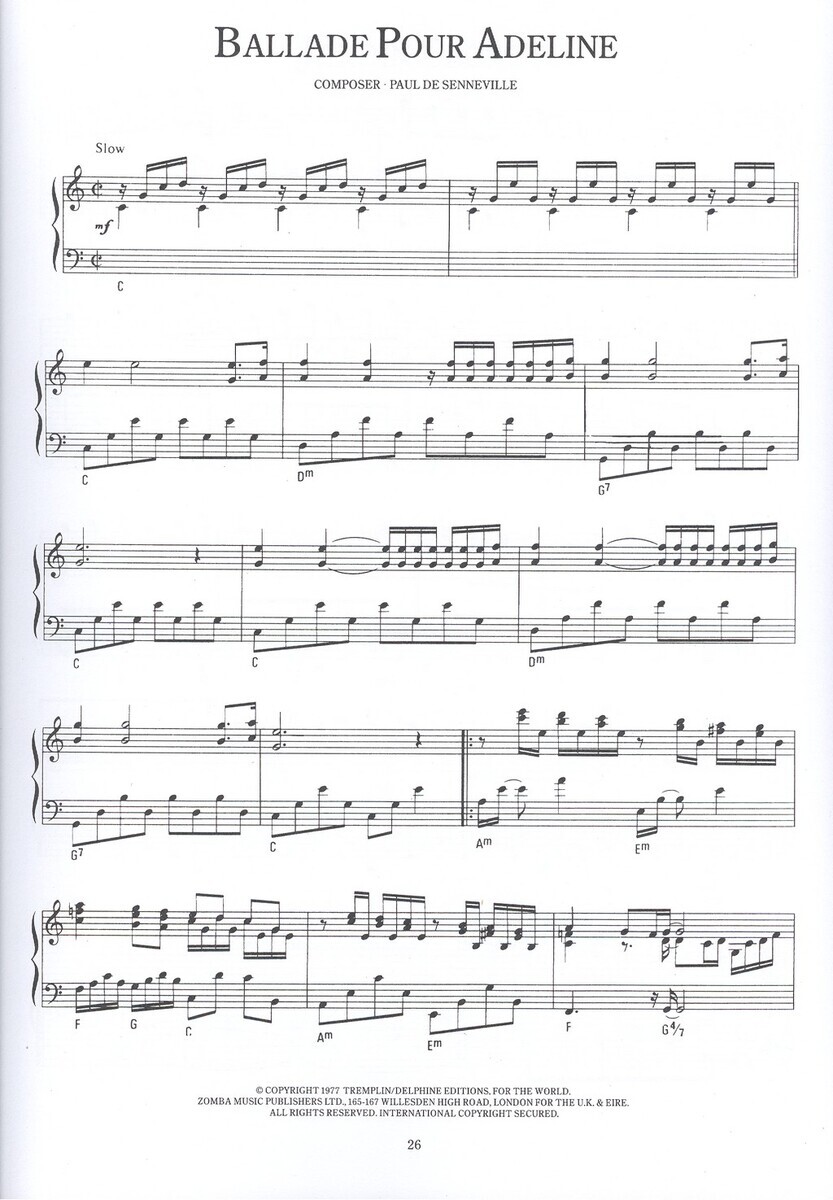 Zajímavý titul, který Vám nabízí další světově známé melodie a skladby jako Balada pro Adélku,ROMANTICA SERENADE,SECRET OF MY LOVE a dalšív příjemném aranžmá pro sólo klavír, které znáte v podání známého francouzského klavíristy Richard Clayderman.