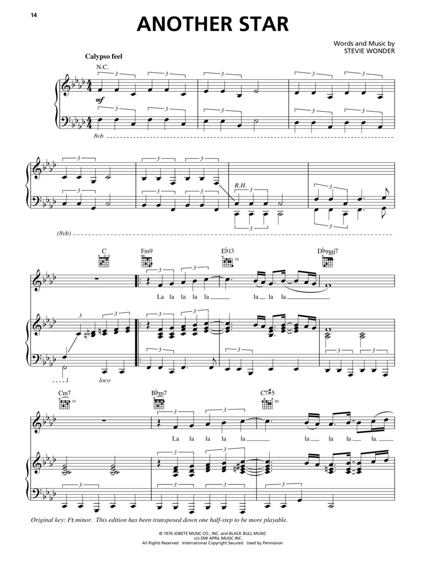Stevie Wonder (1950) - vynikající americký zpěvák, pianista, skladatel, který je již od útlého věku slepý. Má široký hudební záběr pop, funky, soul, rock, R&B, jazz a svouúspešnou kariéru začínal již v dětství. Svůj první singl nahrál v roce 1962 ve svých dvanácti letech a v roce 1963 již sklízí obrovský úspěch s albem 12 Years Old Genius. Tento titul je vynikající příležitostpro všechny fanoušky Stevie Wondra, vlastnit kolekci 75 jeho nejznámějších a nejúspěšnějších písní z let 1963 - 1998. Všechny skladby jsou v klasické úpravě piano/vocal/guitar - tedy melodická linka, s textem, kytarové akordové značky a klavírní part.