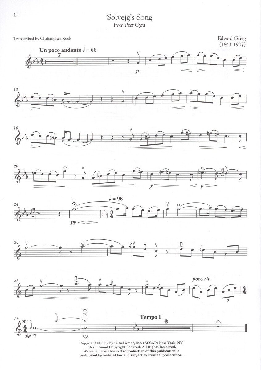 Country Gardens (Anonymous) Bourrée from the SUITE IN C MAJOR, BWV 1066 (J.S. Bach)Scherzo from the STRING QUARTET in C minor, Op. 18, No. 4 (Beethoven)Hungarian Dance No. 5 (Brahms)Waltz, Op. 39, No. 15 (Brahms)The Blessed Spirits from ORFEO ED EURIDICE (Gluck)Solvejg's Song from PEER GYNT (Grieg)Gigue from the CONCERTO GROSSO, Op. 6, No. 9 (Handel)Minuet from the SERENADE in B-flat Major for Wind Instruments, KV 361 (Mozart) I Attempt from Love's Sickness to Fly from THE INDIAN QUEEN (Purcell)Minuet from the STRING QUARTET in B-flat Major, D. 112 (Schubert) Soldier's March from ALBUM FOR THE YOUNG, Op. 68, No. 2 (Schumann) Mazurka from the PIANO TRIO in A Minor, Op. 50 (Tchaikovsky) Les Plaisirs from the SUITE FOR RECORDER AND STRINGS in A Minor, TV 55, No. 12 (Telemann)