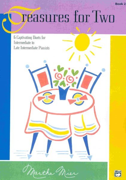 Treasures for Two (Poklady pro dva) od Martha Mier je sešit obsahující 6 příjemných klavírních duet různých stylů a nálad pro středně pokročilé klavíristy. Obtížnost 4+