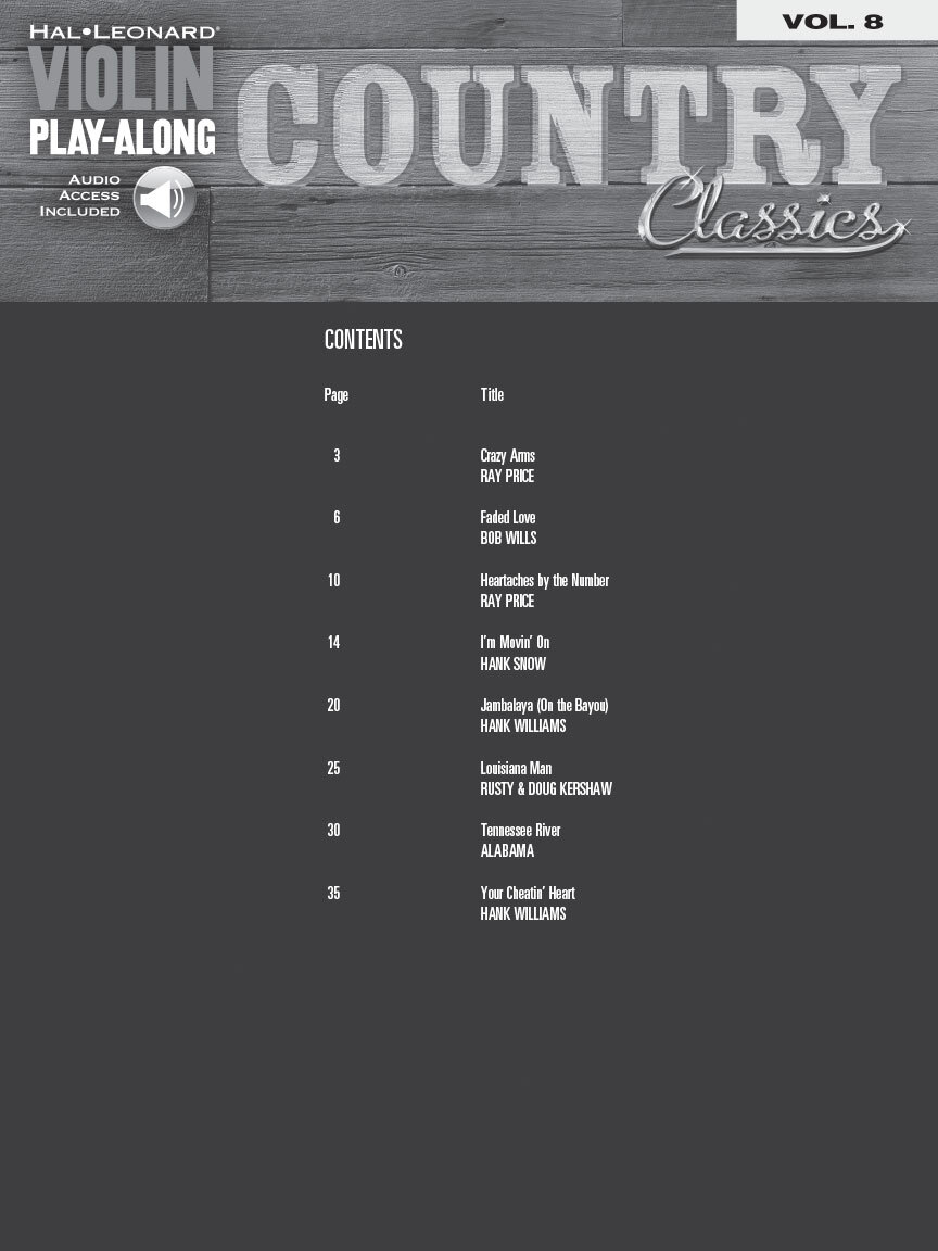 Crazy ArmsFaded LoveHeartaches By The NumberI'm Movin' OnJambalaya (On The Bayou)Louisiana ManTennessee RiverYour Cheatin' Heart