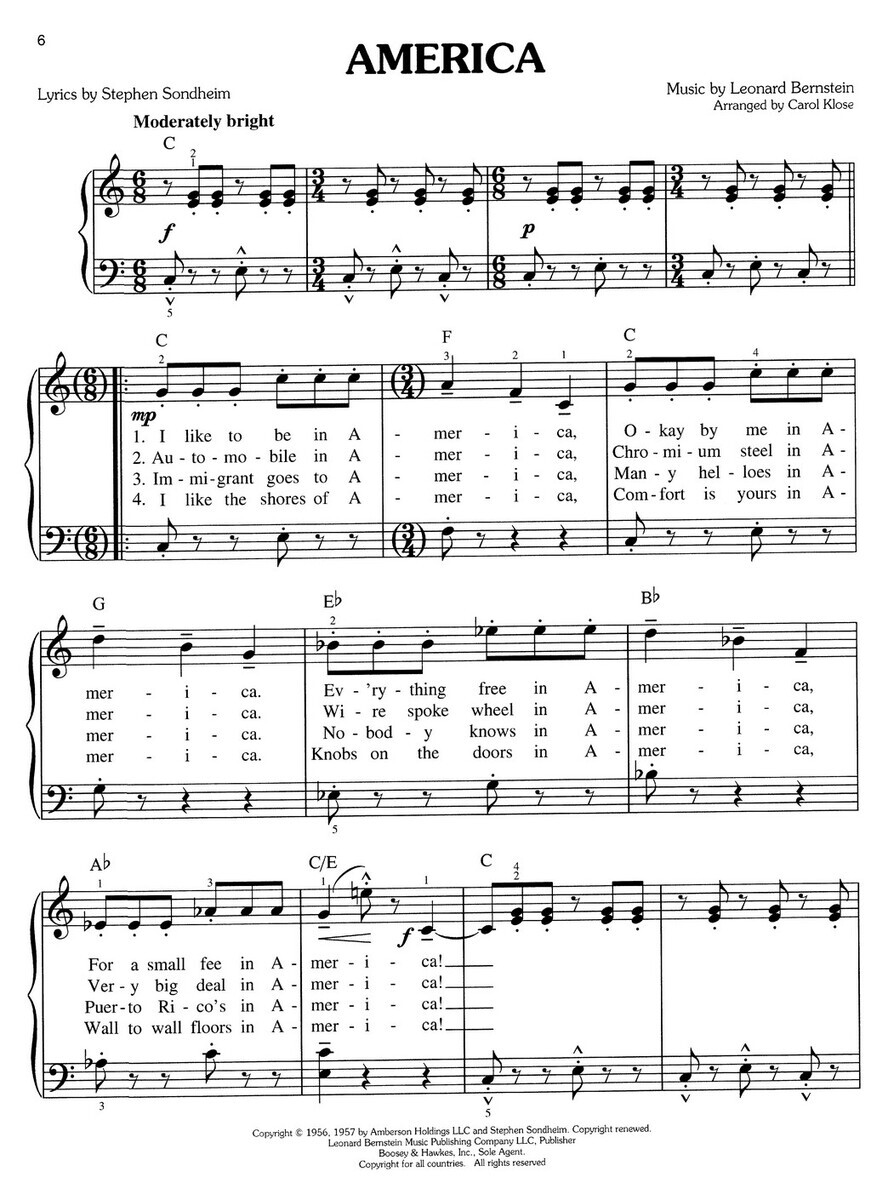 WEST SIDE STORY selection from musical easy piano